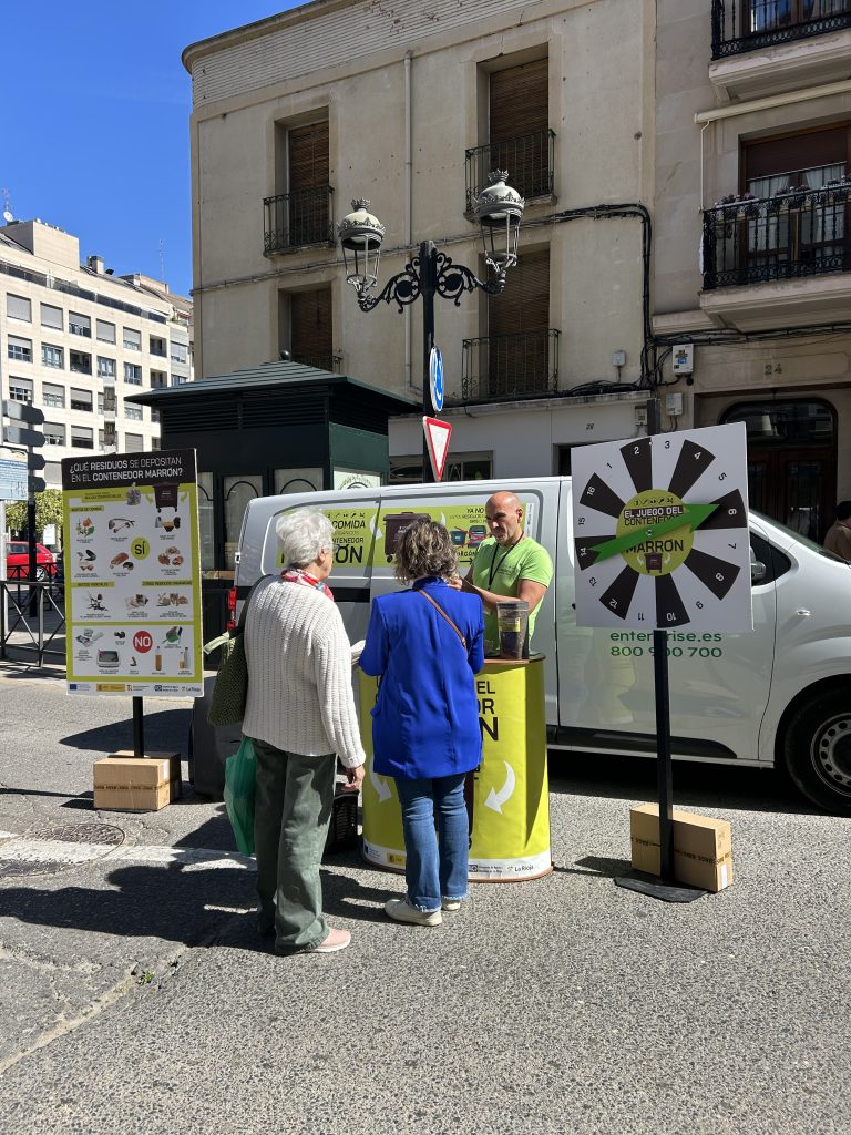 También se visitarán 38 municipios, con dos vehículos atendidos por dos educadores ambientales por vehículo, y se detendrán en los mercadillos, montarán un stand informativo móvil, para informar y resolver dudas mediante juegos, llevando una ruleta y unas cartas de preguntas para los participantes que se acerquen al stand. Todos los participante se llevarán un premio, una bolsa de pan de algodón, bolsas compostables y un folleto informativo sobre lo que va o no va en el contenedor marrón.